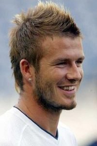 David Beckham popularized the faux hawk style in the early ’00s, and since then it’s been seen all over the place. Becks’ version features a longer strip of hair down the middle of the head all the way from the forehead to the nape of the neck, while hair on the sides is shorter, but not so much that scalp is visible.