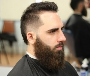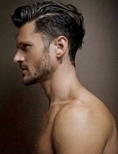 This haircut has the same basic elements as the popular undercut style: longer hair on top with dramatically shorter hair at the back and sides. Because the long hair on top doesn’t taper in length from front to back, it creates a subtle mohawk shape when styled swept backwards.
