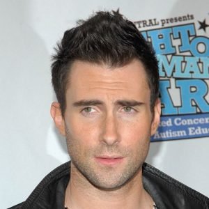 Another faux hawk look from Adam Levine, this style looks as though it’s been softly brushed into place, and was probably styled with some artful blowdrying and sparing use of styling cream or texturizing paste.