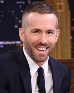 This version of a short crew cut has more of a military feel thanks to its higher fade and relatively short hair on top of the head. Compared to the slightly longer hair we’re used to seeing on Ryan Reynolds, this high shaved style comes across as more confident and mature.