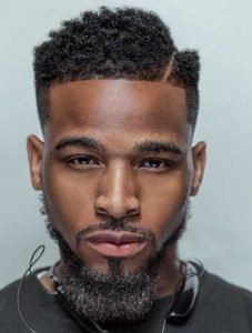 Leaving hair a little longer than the classic fade cut gives natural curls some room to play while still remaining in a manageable shorter style.