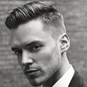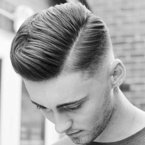 This cut features a bit of a modified comb over, where hair is brushed back instead of over to one side. The finished look ends up being more casual and easier to style and maintain.