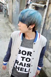 Icy blue and purple tones are currently the most popular for Korean men’s hairstyles at the moment. The multiple blue and violet tones in this mid-length hair are accentuated with tousled texture and dark roots.